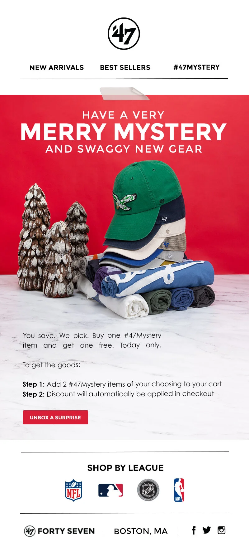 I took the lead as Art Director on ’47’s 2020 Holiday Campaign. With the pandemic changing the happenings of the holiday season, we sent a message to our fans across the world to Keep Cheering On. The cozy and DIY in-studio aesthetic reflected our fans staying home for the season but celebrating with some team color and good old fashioned cheer.